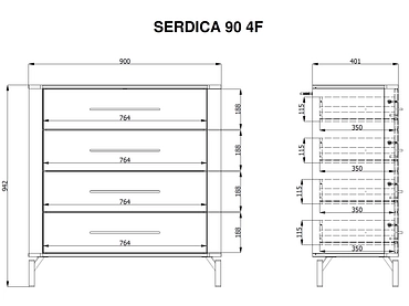 Commode SERDICA 4 tiroirs 40x90x94cm cashmere chêne