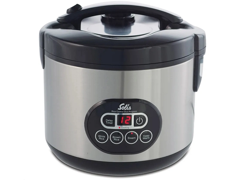 - Un appareil pour cuire différentes sortes de riz et cuire à la vapeur des légumes, du poisson et de la volaille. Avec le programme Rice Cooker Duo de Solis, les deux peuvent être réalisés simultanément. Solis permet de cuire du riz parfaitement aéré et de cuire simultanément des légumes, du poisson et de la volaille à la vapeur, ce qui permet d'économiser de l'énergie, de la place et du temps.