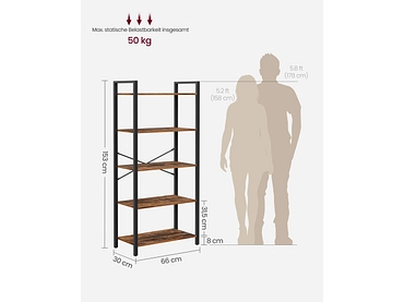 SONGMICS Etagère RUSTIK 66x30x153cm panneau de particules mélamine