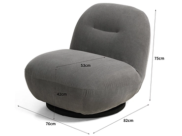 Découvre le fauteuil HERBIE, un véritable cocon de confort recouvert d'un tissu velours côtelé gris doux et chaleureux. Son revêtement est composé de 90% polyester et 10% nylon. Ce fauteuil pivotant, monté sur des pieds en métal noir avec une finition mate, apportera une touche moderne à ton intérieur. La structure en contreplaqué et bois massif d'eucalyptus te garantit une grande robustesse. L'assise et le dossier sont garnis de mousse PU et de fibre polyester, pour un confort optimal. Profite d'un fauteuil déjà monté, prêt à embellir ton espace de vie. D'autres coloris sont disponibles pour que tu trouves celui qui correspond parfaitement à tes envies.