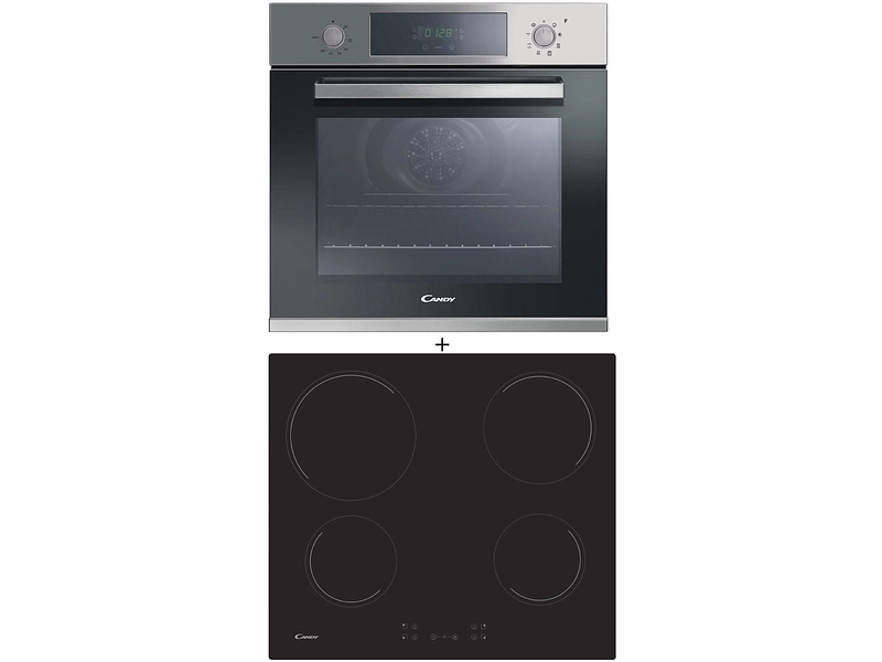 Découvre le CANDY Four encastrable + plan de cuisson FCP605XL/E 65L manuel, un ensemble élégant en inox et noir qui s'intégrera parfaitement dans ta cuisine. Ce four de classe énergétique A+ te propose plusieurs programmes de cuisson incluant Gril, Décongélation, Fonction pizza et Cook Light. La plaque vitrocéramique possède 4 zones en verre noir avec commandes frontales et une puissance de 2300W. Ses dimensions sont l.59 x P.52 x H.5 cm. Son volume de 65 litres est idéal pour préparer de délicieux repas. Le réglage de la température est mécanique.
