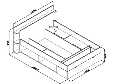 - Nombreux rangements : tiroir coulissant, 4 niches latérales et tête de lit avec étagères intégrées