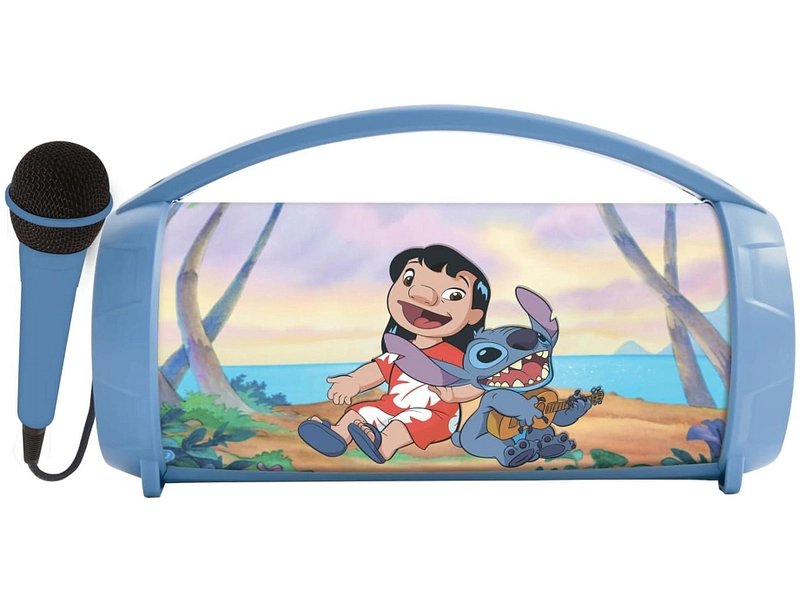 - Haut-parleur Bluetooth portable Lilo & Stitch avec microphone, combinant divertissement et portabilité avec un design joyeux de Lilo & Stitch.