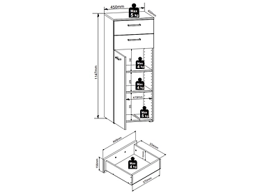 Commode MULTI 1 porte 2 tiroirs 40x45x115cm gris clair