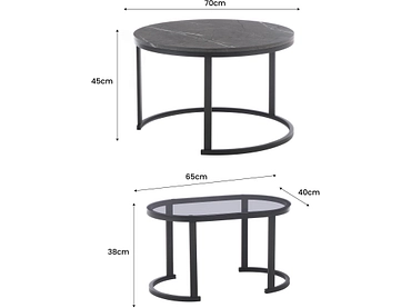 Set tables basses NARA 70x70x45cm gris foncé