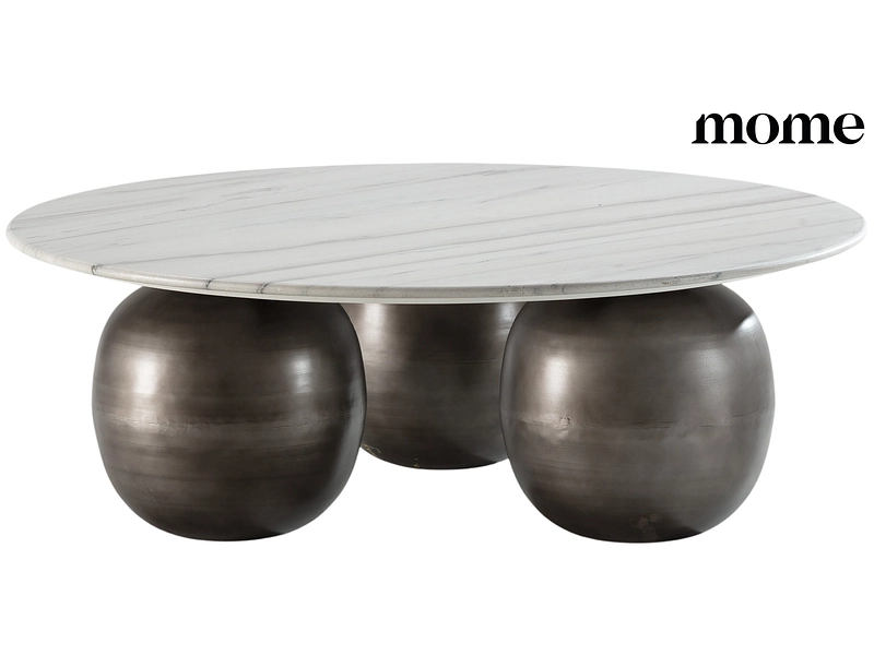- Le piètement en trois sphères métal anthracite brossé apporte un design audacieux et contemporain.