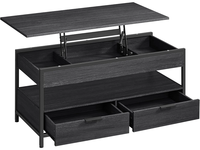 - Plateau relevable + tiroirs de rangement avec rangement ouvert et compartiment caché