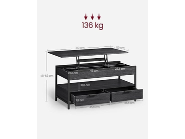 SONGMICS Table basse FABRIK 50x100x63cm black