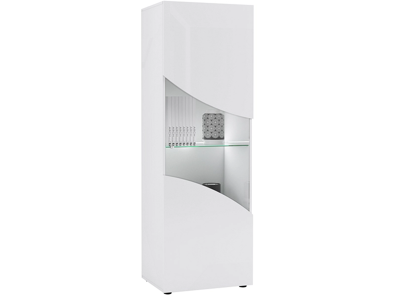 La Vitrine PULP 45x60x180cm apporte une touche d'élégance moderne à ton intérieur. Admire sa finition laquée et brillante qui capte la lumière, illuminant tes objets précieux. Grâce à ses portes battantes en verre transparent, tu peux facilement exposer tes collections tout en les protégeant. L'ouverture par pression est discrète et pratique. Cette vitrine est dotée de tablettes en verre trempé robustes et d'un éclairage LED intégré qui met en valeur tes objets. Sa grande capacité de rangement te permet d'organiser tes affaires avec style. Fabriquée en panneau de particules avec un revêtement laqué, elle bénéficie d'une certification PEFC Mixte. Ses pieds, également laqués, complètent son design raffiné.