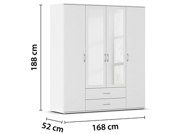- Il suo design senza tempo si integra armoniosamente con gli interni. Lo specchio sul fronte dell'armadio fa apparire la stanza otticamente più grande. I due cassetti offrono un accesso pratico e facile e consentono di organizzare in modo ordinato i piccoli capi di abbigliamento e gli accessori. Grazie ai ripiani regolabili in altezza e all'asta appendiabiti, utilizzabili singolarmente, l'interno dell'armadio può essere organizzato in modo flessibile in base alle proprie esigenze.