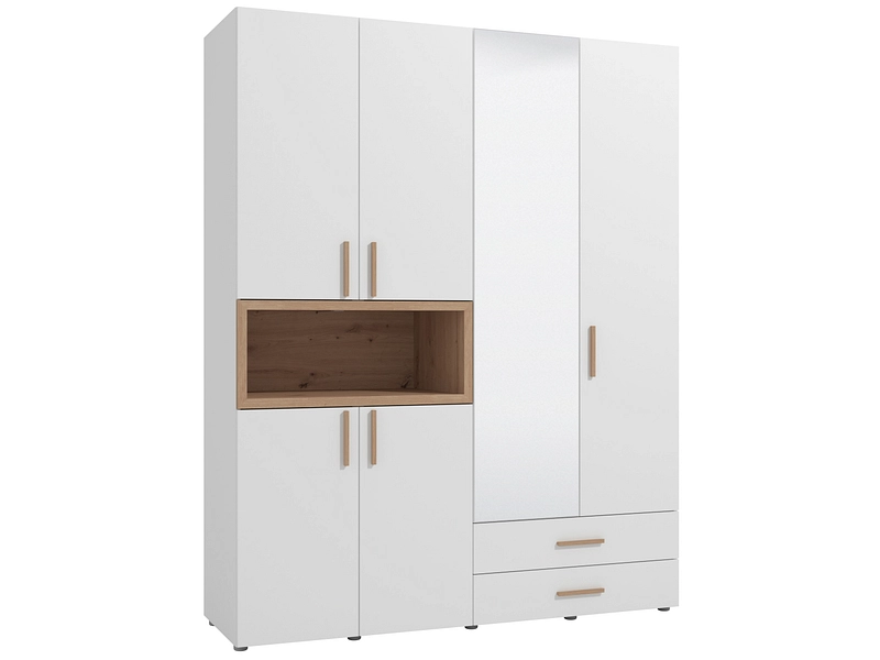 L'armadio a 6 ante battenti CRUSH bianco offre un ampio spazio per tutto il guardaroba. L'attrezzatura interna è inclusa e la finitura in melamina è di facile manutenzione. Il corpo dell'armadio è realizzato in MDF, per garantire robustezza e durata. Per facilitare la vita quotidiana, è incluso uno specchio. Inoltre, il legno utilizzato è certificato FSC Mixte, a garanzia di una gestione responsabile delle foreste. Sono disponibili altri colori e dimensioni per adattarsi perfettamente ai vostri interni. La nicchia a LED (disponibile con il codice 611363) aggiungerà un tocco di fascino alla vostra camera da letto. È montata su una superficie piana per facilitare il montaggio.