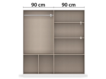- Dietro le ante a battente dell'armadio c'è un ampio spazio di stoccaggio, ideale per riporre vestiti, biancheria da letto e altri oggetti personali. Gli appendiabiti e i ripiani possono essere disposti in altezza in modo flessibile.