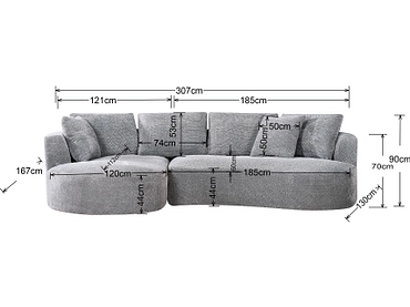 Scoprite il divano angolare INES in tessuto grigio, un vero e proprio richiamo per il vostro salotto. Rivestito in tessuto 100% poliestere, ha una sensazione piacevole al tatto e un look moderno. La seduta e lo schienale sono imbottiti in fibra di poliestere e schiuma, per garantire un comfort ottimale nei momenti di relax. I cuscini, anch'essi in grigio, si abbinano perfettamente. L'angolo giusto permette di sfruttare al meglio lo spazio della stanza. La struttura in metallo garantisce resistenza e durata nel tempo. Questo divano è stato progettato per offrire uno spazio caldo e confortevole.