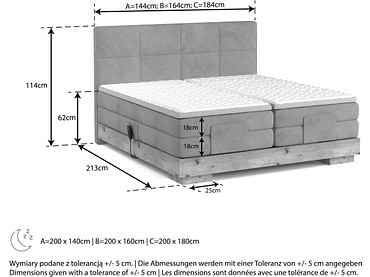 Boxspring eletttrico CRUDO antracite 160x200cm morbido