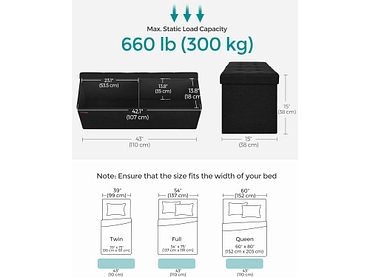 Scoprite il comò TRUNK di SONGMICS in tessuto nero, un alleato ideale per ottimizzare lo spazio di archiviazione e aggiungere un tocco di eleganza alla vostra camera da letto. La sua finitura in tessuto di alta qualità offre una sensazione piacevole al tatto e un aspetto raffinato. Questa cassapanca consente di riporre facilmente gli oggetti essenziali, offrendo al contempo una comoda seduta. La base a prova di umidità protegge i vostri oggetti dall'umidità. Disponibile in altri colori e dimensioni per adattarsi alle vostre preferenze e ai vostri interni. Realizzata in tessuto resistente e MDF, questa cassapanca combina durata ed estetica. Sfruttate al meglio il vostro spazio con questo mobile pratico ed elegante!