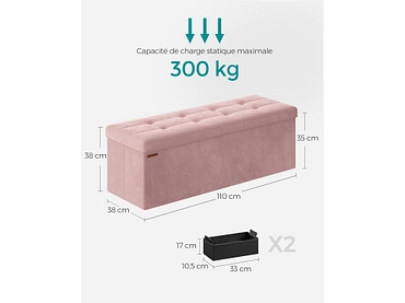Scoprite il comò TRUNK di SONGMICS in velluto rosa, un alleato ideale per ottimizzare lo spazio. Il suo morbido rivestimento in velluto aggiunge un tocco di eleganza alla vostra camera da letto. Questa panca con box integrato vi offre una comoda superficie imbottita, perfetta per sedersi. Grazie al divisorio integrato e rimovibile, potrete organizzare i vostri effetti personali in modo efficiente e riporre facilmente i vostri oggetti essenziali. Realizzata in MDF resistente, questa cassapanca è disponibile in altri colori e dimensioni per soddisfare le vostre esigenze.