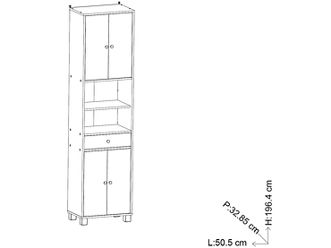 - 1 ripiano regolabile su 3 livelli. 1 nicchia con 1 ripiano regolabile su 3 livelli. 1 cassetto montato su guide metalliche.
