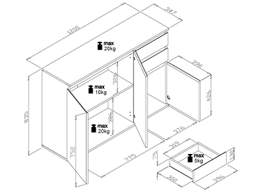 Comò BREST 3 ante 2 cassetti 35x119x84cm bianco melaminico