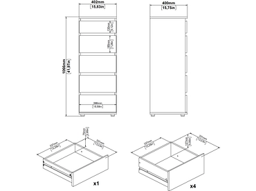 Comò NOVA 5 cassetti 40x40.2x106.6cm marrone opaco