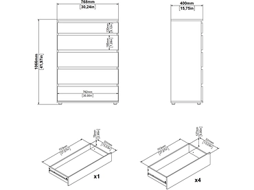 Comò NOVA 5 cassetti 40x76.8x106.6cm bianco opaco