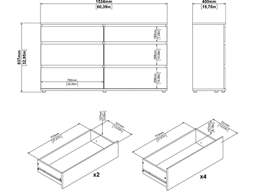 Comò NOVA 6 cassetti 40x153.4x83.7cm marrone opaco