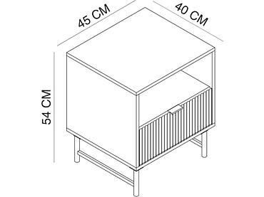 Il comodino grigio ONARIA, con il suo cassetto singolo, vi offre un pratico ed elegante spazio di archiviazione accanto al letto. Con le sue dimensioni di 45x40x54 cm, è perfetto per il vostro spazio. La sua caratteristica finitura ondulata e le robuste gambe in metallo nero aggiungono un tocco moderno alla vostra camera da letto. La maniglia in metallo facilita l'apertura del cassetto. Realizzato in truciolato di alta qualità, questo comodino è costruito per durare nel tempo. Il cassetto può contenere fino a 5 kg.