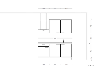 • Mobile cucina composto da 1 base lavello, 1 frigo sottopiano, 1 base piano cottura, 2 pensili