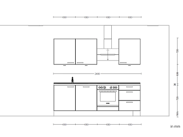 • Mobile cucina composto da 1 base lavello, 1 pensile cucina, 1 base, 3 pensili