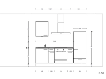 • Mobile da cucina composto da 1 base lavello, 1 base con 1 cassetto, 1 ripiano e 1 anta, 1 pensile cucina, 1 base con 1 cassetto, 1 ripiano e 1 anta, 1 pensile refrigerante con trasformazione in lavagna, 1 pensile