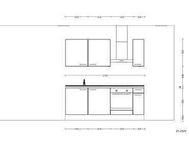 • Mobile cucina composto da 1 base lavello, 1 frigorifero sottopiano, 1 pensile cucina, 3 pensili