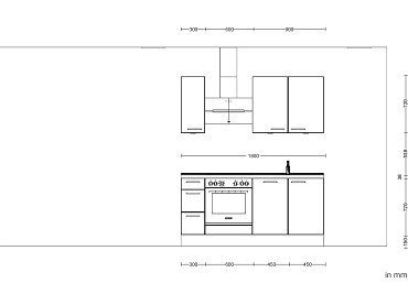 • Angolo cottura composto da 1 mobile sottolavello, 1 mobile da incasso per fornello, 1 mobile base con 1 cassetto e 2 ripiani estraibili, 2 pensili