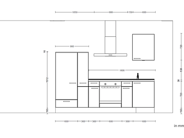 • Angolo cottura composto da 1 mobile sottolavello, 1 mobile da incasso per fornello, 1 mobile base con 1 cassetto e 2 ripiani estraibili, 2 pensili, 1 mobile alto da incasso per frigorifero, 1 armadio farmacia.