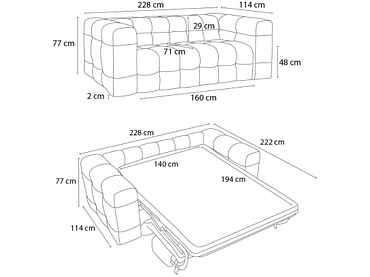 - Il divano è dotato di un materasso ad alto comfort di 14 cm di spessore.