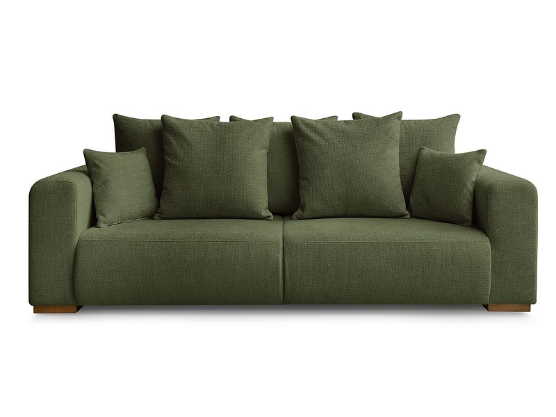 Il divano a 3 posti BOBOCHIC SIDONIE in tessuto verde screziato offre un comfort equilibrato grazie alla seduta e all'imbottitura in schiuma HR e HD. La sua solida struttura è realizzata in legno, truciolato, pino, faggio e abete rosso. I piedini in plastica garantiscono la stabilità. Il rivestimento in tessuto screziato, realizzato al 100% in poliestere, presenta leggere variazioni di colore e una sensazione piacevole al tatto. Viene fornito pronto per essere assemblato. Godetevi il cuscino in dotazione per un comfort ottimale. Sono disponibili altri colori e dimensioni.
