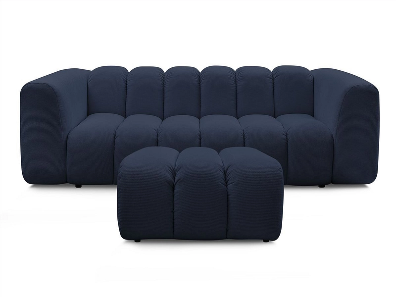 Divano 3 posti con pouf BOBOCHIC TALIA Tessuto screziato blu scuro