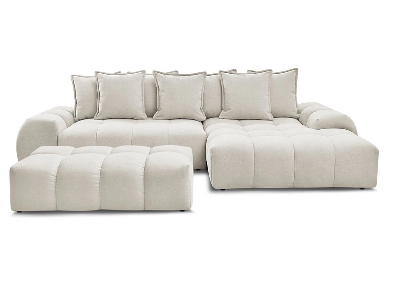 Divano ad angolo con pouf BOBOCHIC EVEREST Tessuto con trama beige