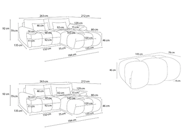 • Altezza : 78 cm , Lunghezza : 137 cm , Larghezza : 214 cm , Peso : 90 kg