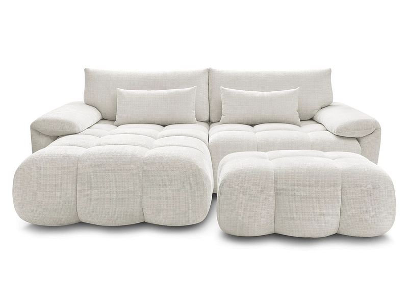 Divano ad angolo con pouf BOBOCHIC IVANE Tessuto con trama bianco