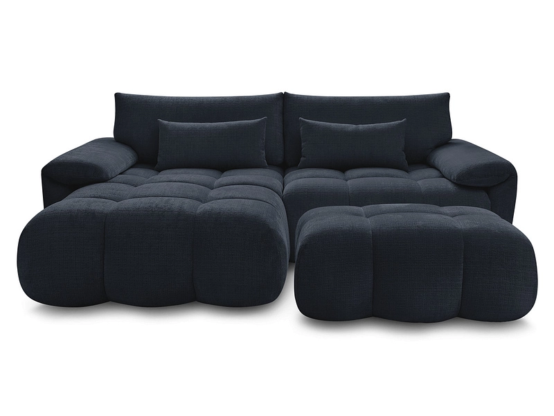 Divano ad angolo con pouf BOBOCHIC IVANE Tessuto con trama blu scuro