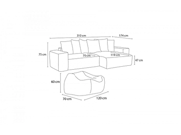 - Divano angolare reversibile che si adatta ai vincoli del soggiorno