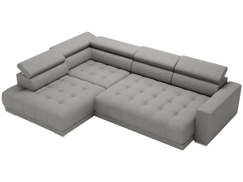 Il divano angolare MOJITO in tessuto grigio vi offrirà un luogo perfetto per rilassarvi. Il suo rivestimento in 100% poliestere è morbido e resistente. I piedini in alluminio argentato aggiungono un tocco di modernità. La seduta, realizzata in schiuma e molle, garantisce un comfort equilibrato. I poggiatesta regolabili manualmente si adattano alle vostre esigenze per un relax personalizzato. La struttura in legno di pino è robusta e durevole. L'imbottitura in schiuma PU dello schienale e della seduta massimizza il vostro benessere. Questo divano angolare unisce comfort e stile. Disponibile in altri colori.