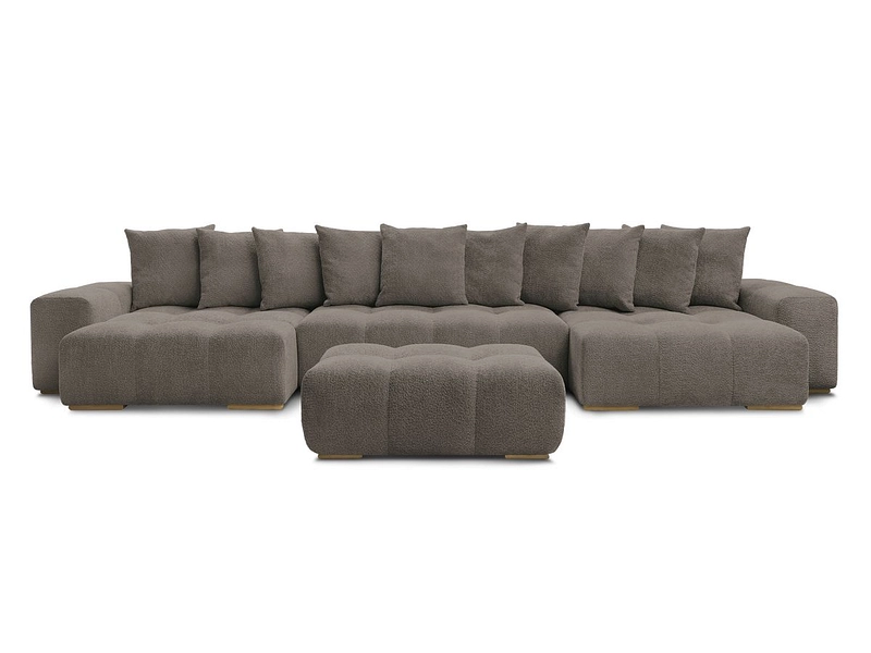 Divano ad angolo panoramico con pouf BOBOCHIC ANAKIN Tessuto bouclé marrone