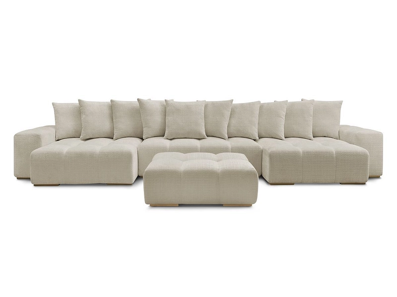 Divano ad angolo panoramico con pouf BOBOCHIC ANAKIN Tessuto con trama beige