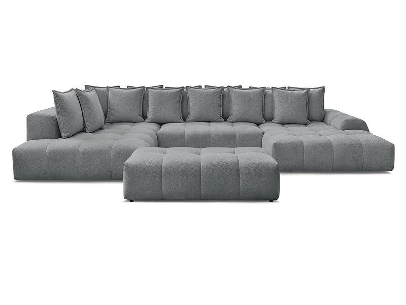 Divano ad angolo panoramico con pouf BOBOCHIC EVEREST Tessuto screziato grigio scuro