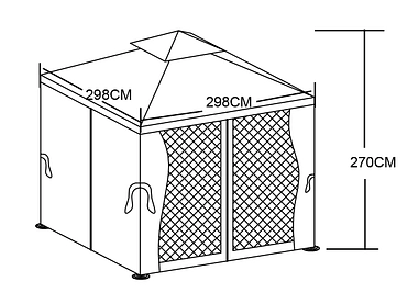 Il padiglione EVEREST 300 cm x 300 cm x 270 cm è il vostro nuovo spazio esterno ideale! Realizzato in alluminio e poliestere, questo robusto padiglione è perfetto per proteggervi dal sole e per farvi godere dell'aria fresca. Grazie alle tende e alla zanzariera integrate, potrete dire addio agli insetti indesiderati e creare un'atmosfera accogliente per i vostri momenti di relax. Le sue dimensioni generose offrono uno spazio flessibile per una varietà di usi, da un pasto in famiglia a un pomeriggio di lettura. Sfruttate al meglio gli spazi esterni con questo gazebo pratico ed elegante.