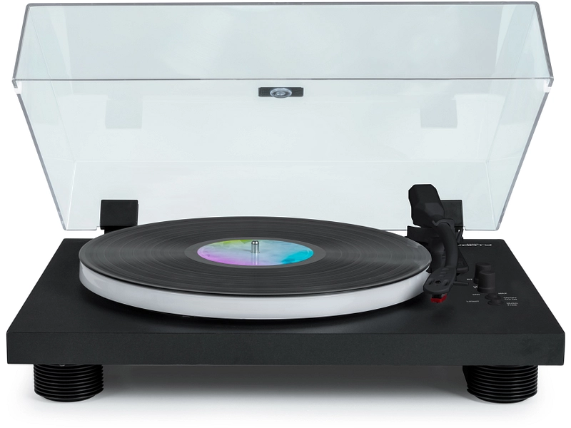 - Azionamento a cinghia, con 3 velocità (33/45/78 giri), auto Stop e alimentazione a 230 V (adattatore 12V-1A incluso)
