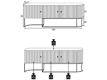 - Tre ante nascondono un ampio spazio interno, perfetto per organizzare dispositivi multimediali e accessori.