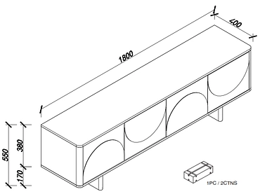 - Decorazione a rilievo sulle ante, con il motivo semicircolare tipico della collezione.