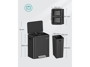 - Doppio bidone per l'umido e il secco Questo bidone da cucina ha due scomparti da 15 litri, che consentono di separare facilmente i rifiuti. Non c'è bisogno di conservare diversi bidoni, vaschette di plastica, lattine, bottiglie e altri tipi di rifiuti: questo unico bidone è tutto ciò che vi serve.