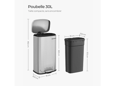 - ADATTO ALLA MAGGIOR PARTE DELLE CASE. Capacità: 30 litri, dimensioni: 35 x 25,5 x 63,5 cm - Questo cestino offre molto spazio per i rifiuti, occupando pochissimo spazio sul pavimento. Inoltre, è elegante e moderno e si adatta a diversi stili di interni.